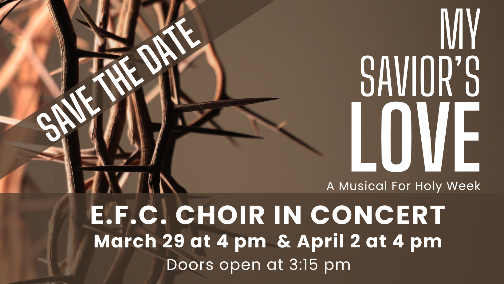 The EFC Choir Concert will be happening for two performances on March 29th and April 2nd. These are free concerts and doors open at 3:15PM. Bring a friend!
